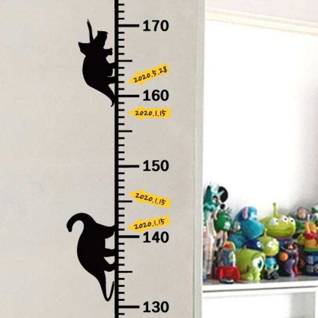 다양하고 귀여운 동물 캐릭터들이 그려진 벽 스티커형 키재기입니다. 아이들의 시선을 사로잡는 화려한 색감과 친근한 디자인으로 키재는 시간을 더욱 즐겁게 만들어줍니다. 특수 접착 방식으로 벽지 손상 없이 간편하게 부착하고 제거할 수 있으며, 방수 재질로 오염 시 쉽게 닦아낼 수 있어 위생적이에요. 공간 활용도가 높아 좁은 벽면에도 효과적으로 사용할 수 있는 인기 제품입니다.